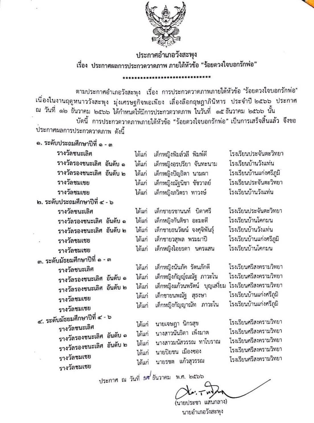 รับรางวัลประกวดวาดภาพ ภายใต้หัวข้อ ”ร้อยดวงใจบอกรักพ่อ“ ในงานฤดูหนาว วันที่ 20 ธันวาคม 2566