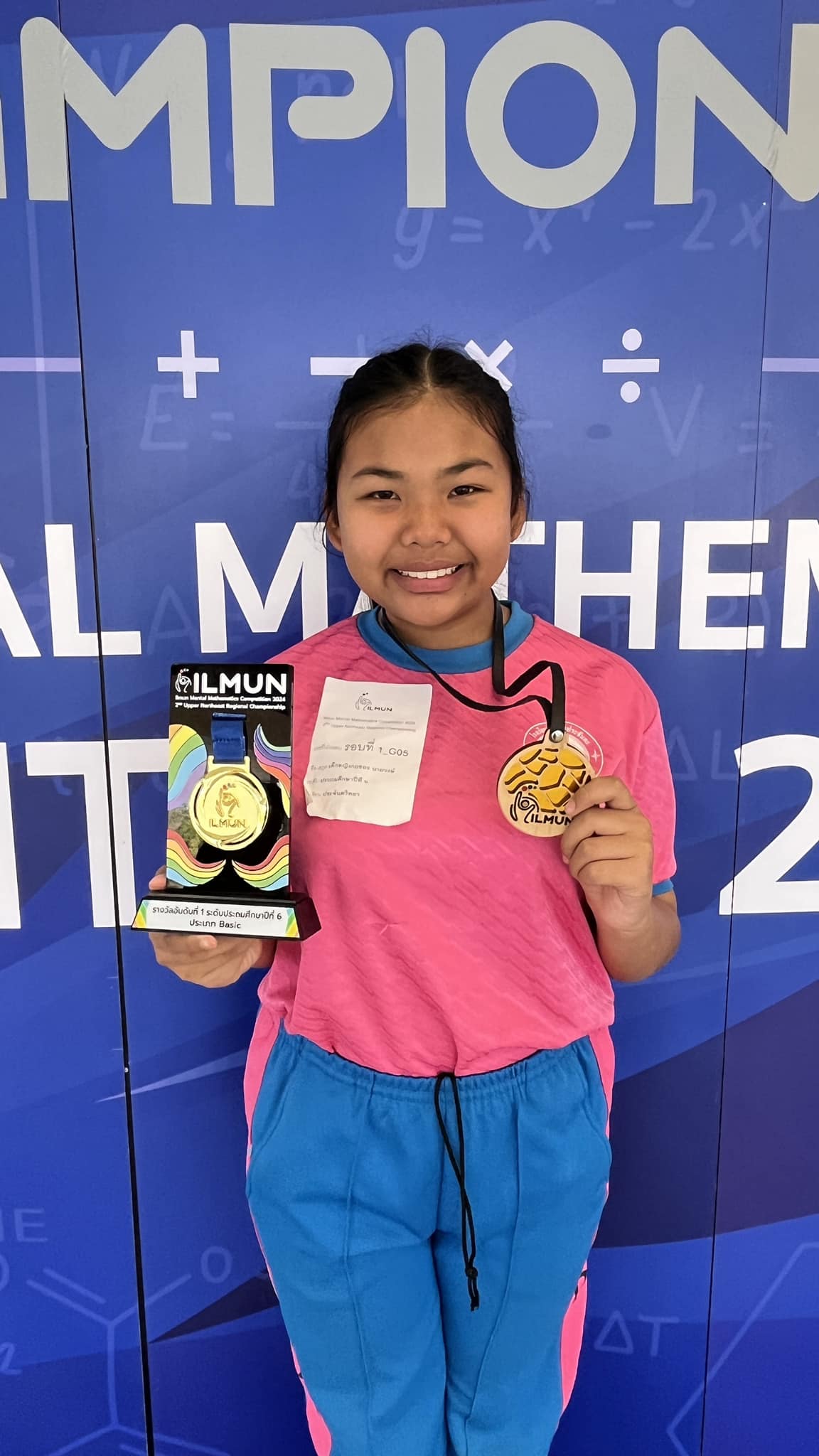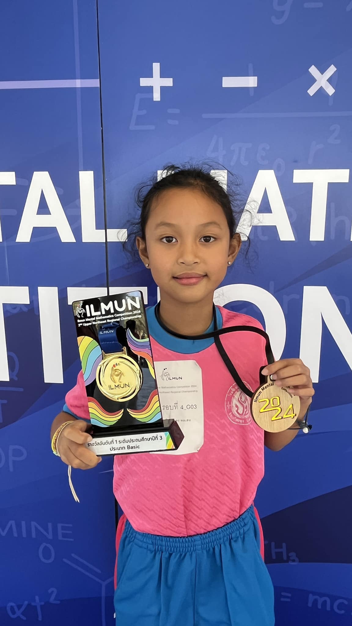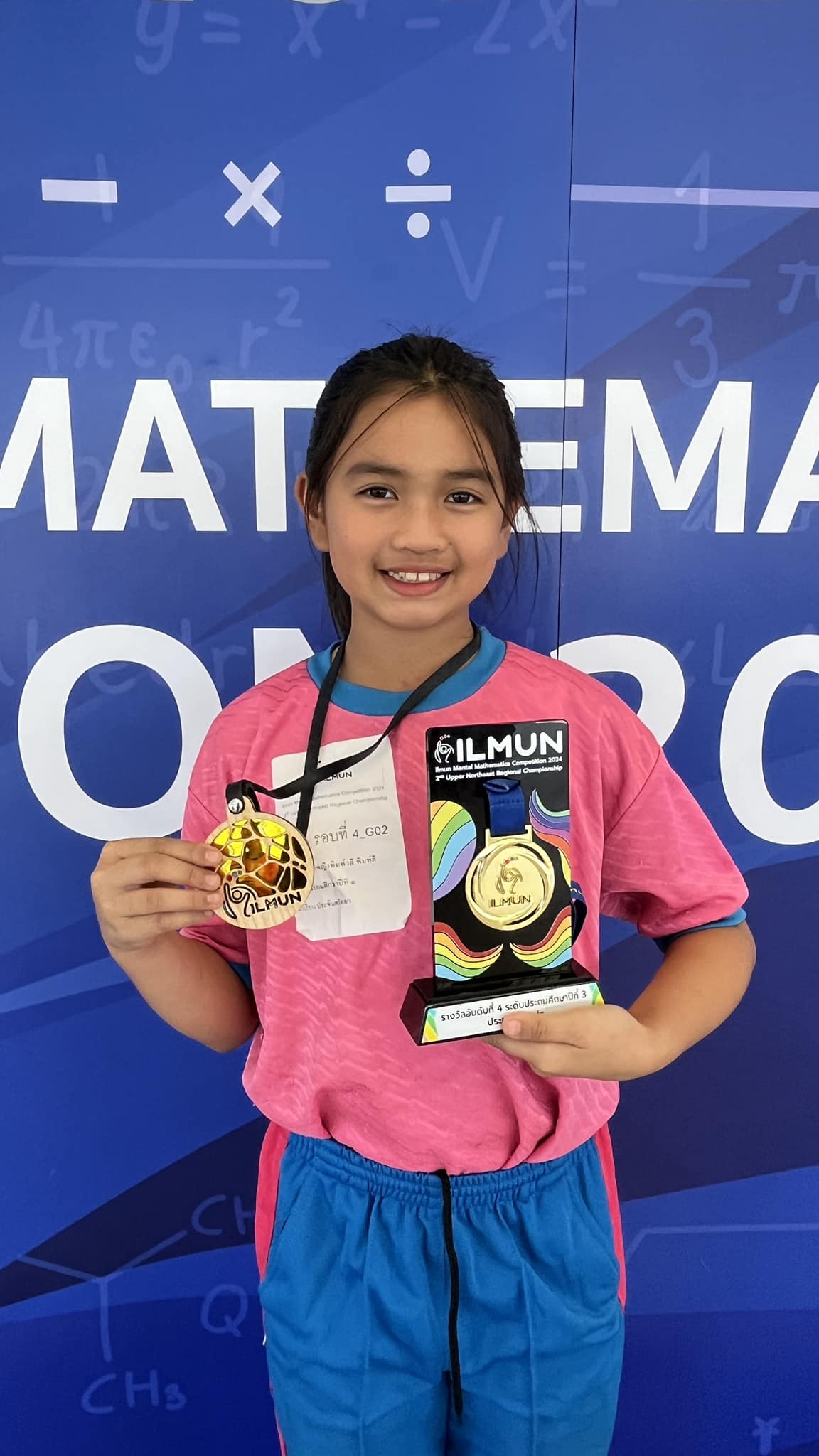 ชื่อผลงาน : ได้รับรางวัลรองชนะเลิศอันดับ 2 ระดับชั้นประถมศึกษาปีที่ 3 ในการแข่งขัน 2 ND UPPER NORTHEAST REGIONAL CHAMPIONSHIP ILMUN MENTAL MATHEMATICS COMPETITION 2024