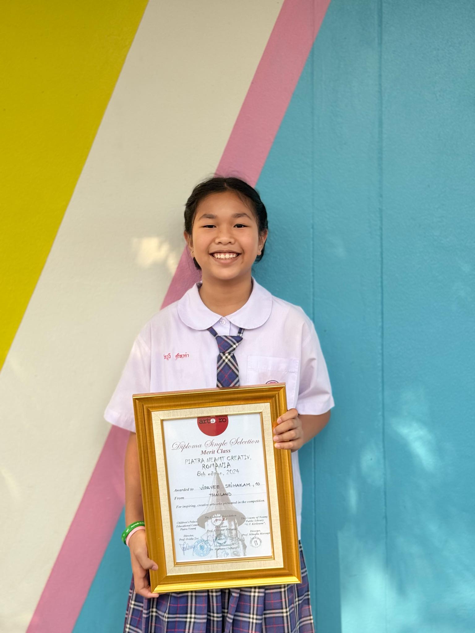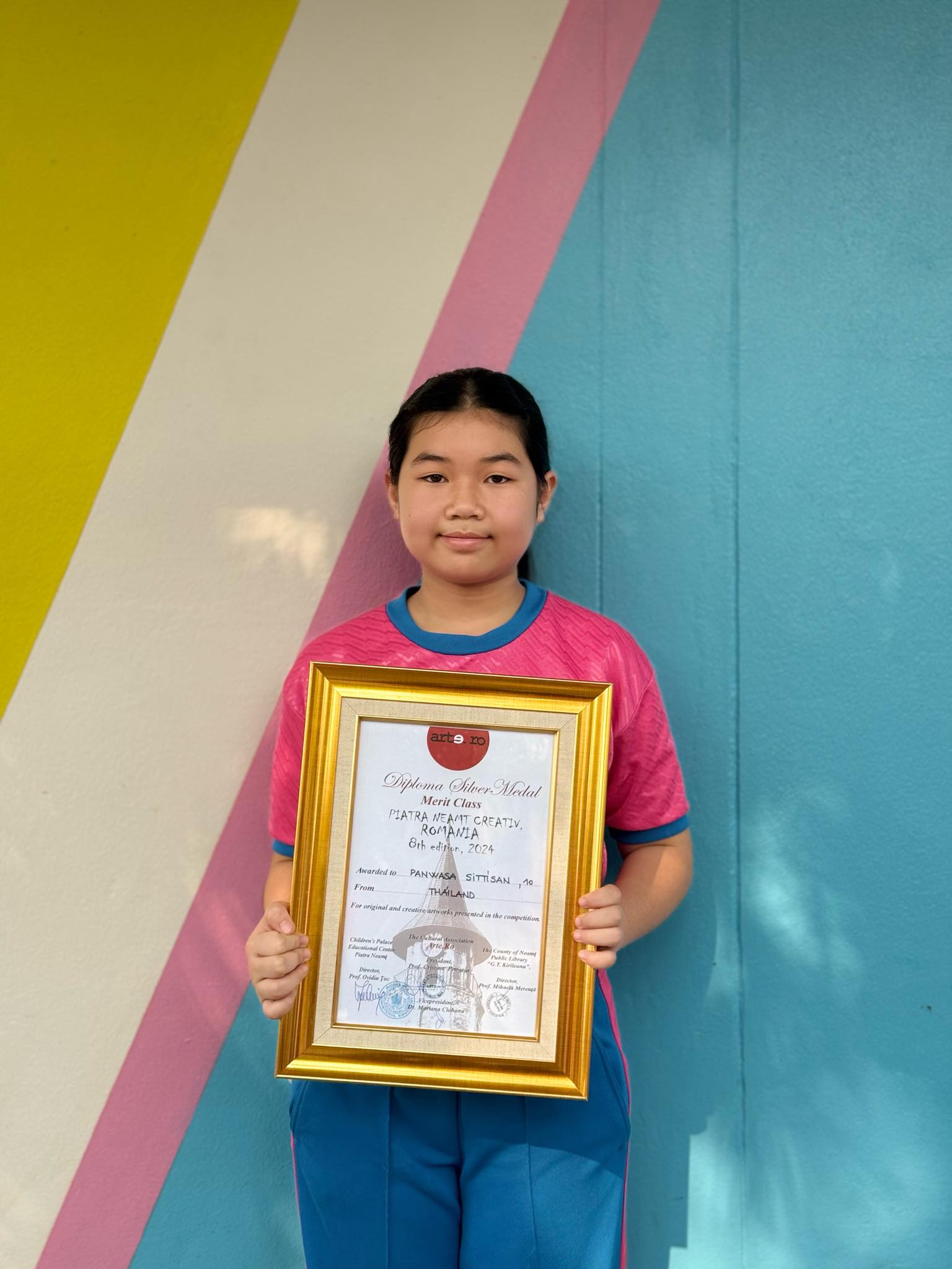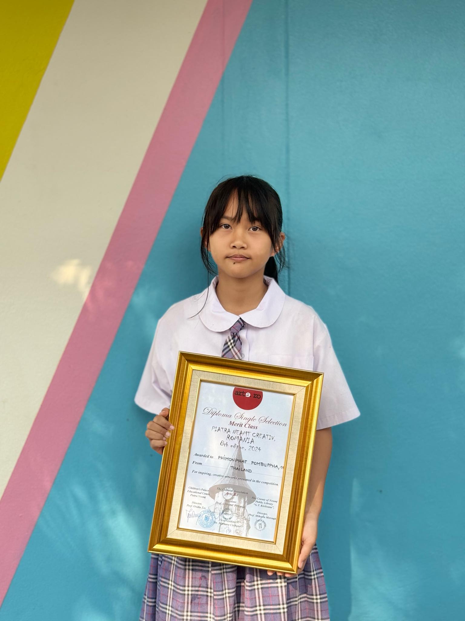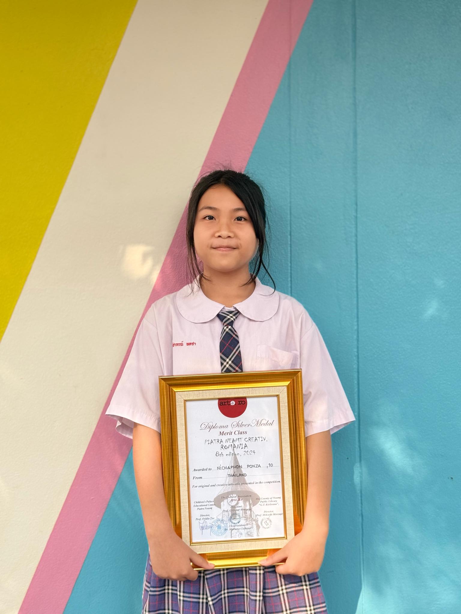 ชื่อผลงาน : ได้รับรางวัลในรายการแข่งขัน THE 27TH ANNUAL2024 PEACE PALS INTERNATIONAL ART EXHIBITION & AWARDS AGE CATEGORY 5 - 7 ผู้ฝึกสอน นายบัญชา ตางาม (ครูเค้ก)